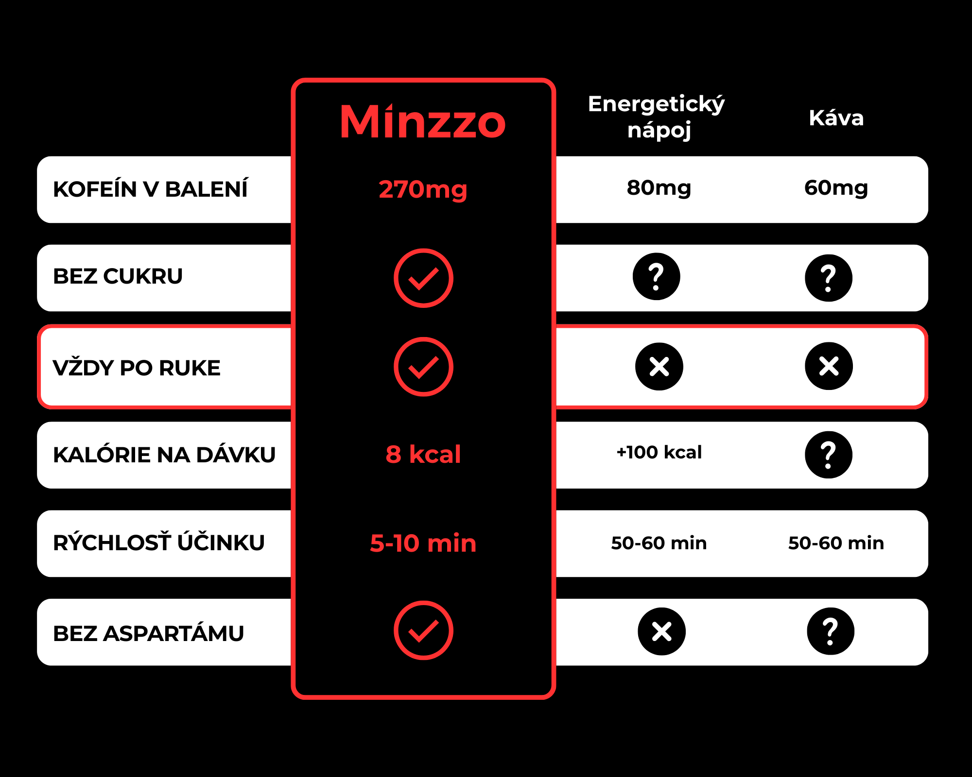 Minzzo obchádza trávenie tekutín a poskytuje priamejší a konzistentnejší spôsob prijatia kofeínu. Vďaka tomu máš lepšiu kontrolu nad tým, kedy energia nastúpi, bez čakania a bez nepredvídateľných výkyvov.